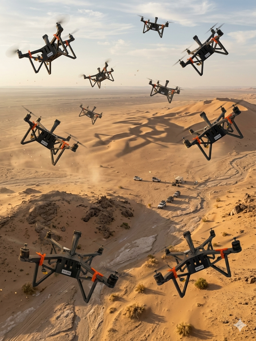 Across current conflicts, adversaries employ low-cost, attritable UAS at scale. FPV drones, loitering munitions, and coordinated swarm tactics are now operational realities.